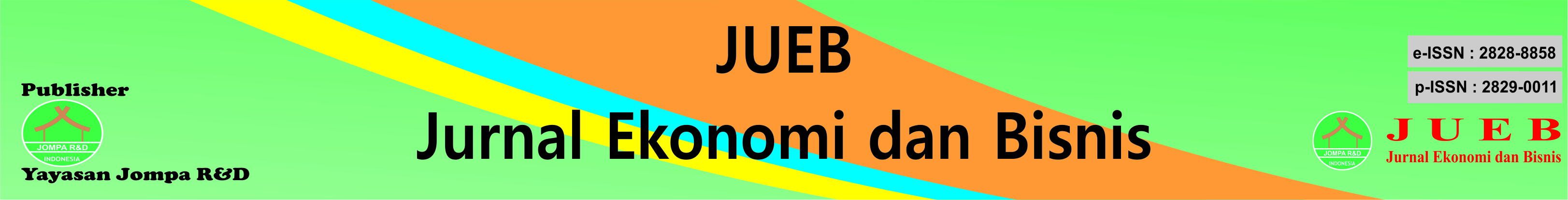 JUEB: Jurnal Ekonomi dan Bisnis memiliki e-ISSN: 2828-8858 dan p-ISSN: 2829-0011 menerbitkan artikel ilmiah bidang ekonomi dan bisnis, manajemen, serta akutansi, berdasarkan hasil penelitian dan hasil kajian pustaka. Jurnal ini menggunakan Bahasa Indonesia dan bahasa inggris. JUEB menerima artikel yang sesuai dengan ketentuan maupun template yang sudah disediakan oleh pengelola. JUEB adalah jurnal open access dibawah naungan Yayasan Jompa Research and Development. JUEB: Jurnal Ekonomi dan Bisnis Terakreditasi SINTA 4, sesuai SK Dirjen Riset dan Pengembangan Kemendiktisaintek Nomor: 1286/DST/C3/HM.01.00/2026. Terbit tiap bulan Maret, Juni, September dan Desember.