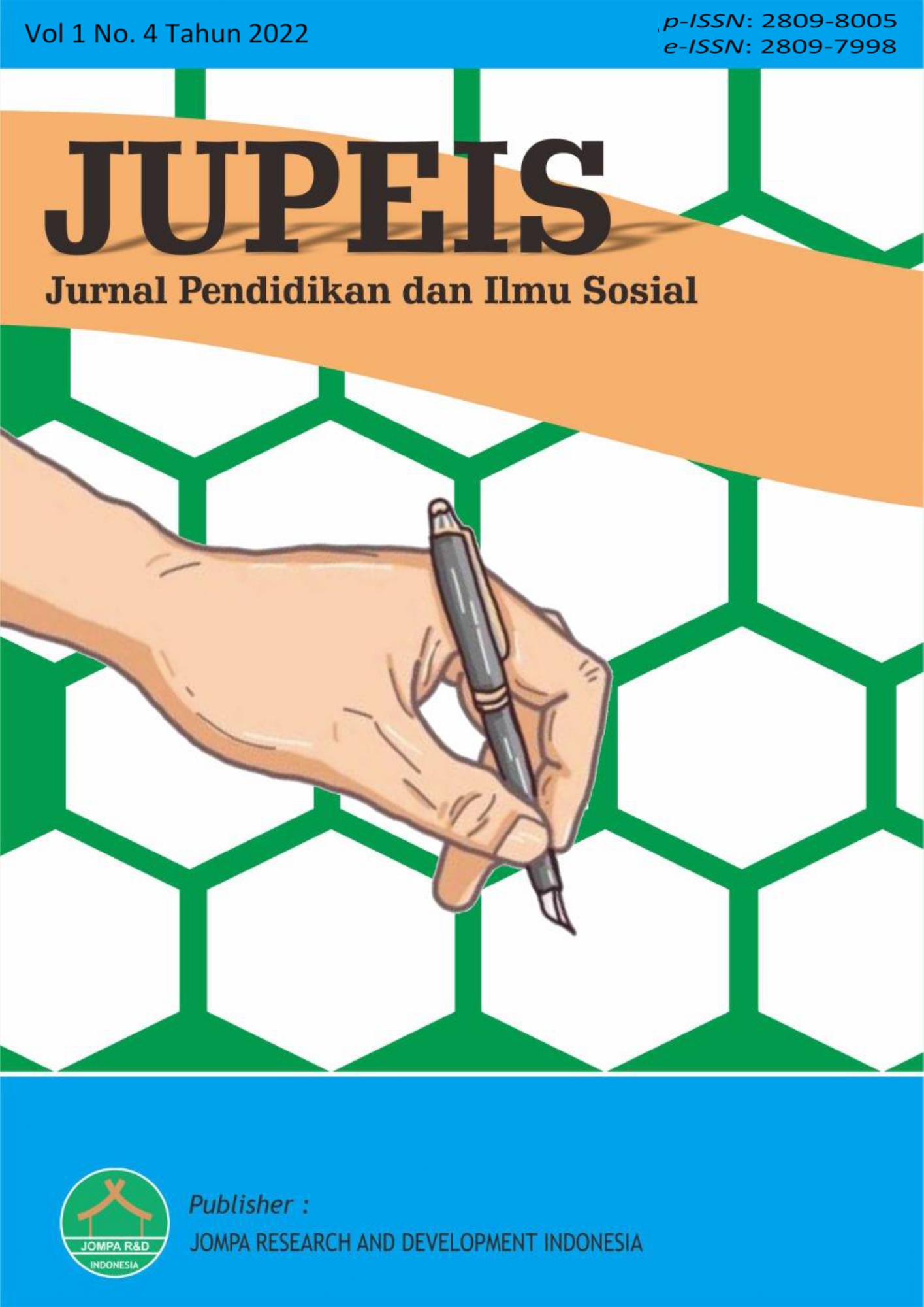 Vol. 1 No. 4 (2022)JUPEIS : Jurnal Pendidikan dan Ilmu Sosial menerbitkan artikel ilmiah pendidikan dan ilmu sosial berdasarkan hasil penelitian dan hasil kajian pustaka. Jurnal ini menggunakan Bahasa Indonesia dan bahasa inggris. Terbit 4 kali setiap tahun pada bulan Januari, Maret, Juli, dan November